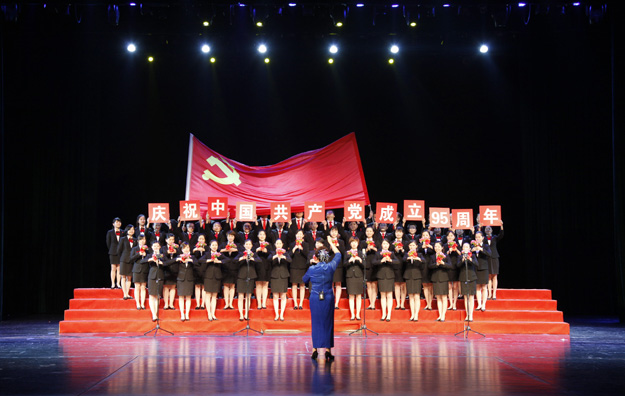 大會(huì)最令人熱血沸騰的環(huán)節(jié)是慶祝建黨95周年歌詠比賽的舉辦?!陡璩鎳?guó)》、《唱支山歌給黨聽(tīng)》、《黨啊,親愛(ài)的媽媽》等一支支弘揚(yáng)偉大祖國(guó)繁榮昌盛的主旋律在金陽(yáng)唱響。綠之韻合唱隊(duì)在集團(tuán)黨總支帶領(lǐng)下以飽滿的熱情和嘹亮的歌聲表演了《四渡赤水出奇兵》,積極進(jìn)取、奮發(fā)向上的精神風(fēng)貌感染了現(xiàn)場(chǎng)每一個(gè)人,并最終榮獲歌詠比賽二等獎(jiǎng)。