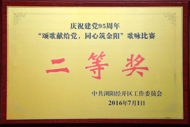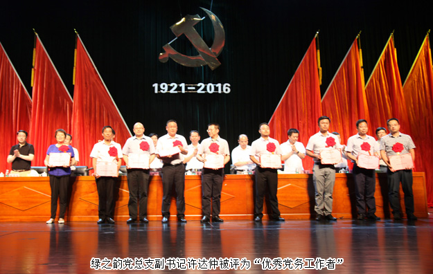 2016年7月1日,瀏陽(yáng)經(jīng)開(kāi)區(qū)慶祝建黨95周年表彰大會(huì)暨合唱比賽在園區(qū)金陽(yáng)文化藝術(shù)中心隆重召開(kāi)。全體黨委領(lǐng)導(dǎo)、機(jī)關(guān)各支部、各非公經(jīng)濟(jì)黨組織以及園區(qū)各企業(yè)代表團(tuán)等參加會(huì)議。會(huì)上,綠之韻集團(tuán)黨總支部憑借出色的黨建工作再次被評(píng)為“先進(jìn)基層黨組織”, 綠之韻黨總支副書(shū)記許達(dá)仲被評(píng)為“優(yōu)秀黨務(wù)工作者”,公司員工黃姣、楊丹被評(píng)為園區(qū)“優(yōu)秀共產(chǎn)黨員”。