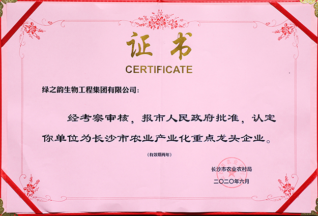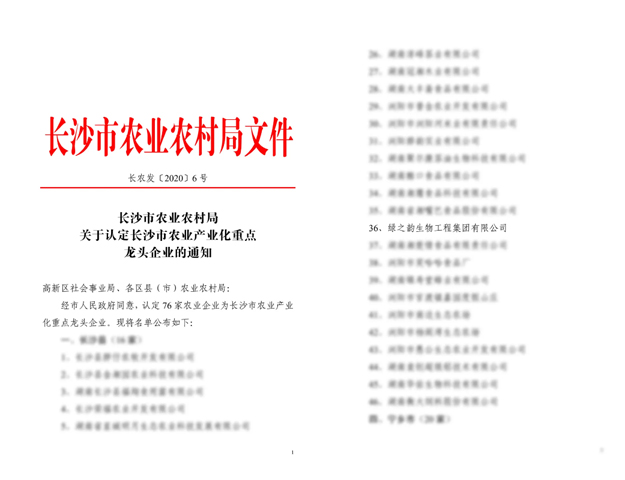 近日,長(zhǎng)沙市農(nóng)業(yè)農(nóng)村局下發(fā)《關(guān)于認(rèn)定長(zhǎng)沙市農(nóng)業(yè)產(chǎn)業(yè)化重點(diǎn)龍頭企業(yè)的通知》,經(jīng)考察審核,報(bào)長(zhǎng)沙市人民政府批準(zhǔn),綠之韻集團(tuán)等76家企業(yè)被認(rèn)定為“長(zhǎng)沙市農(nóng)業(yè)產(chǎn)業(yè)化重點(diǎn)龍頭企業(yè)”。