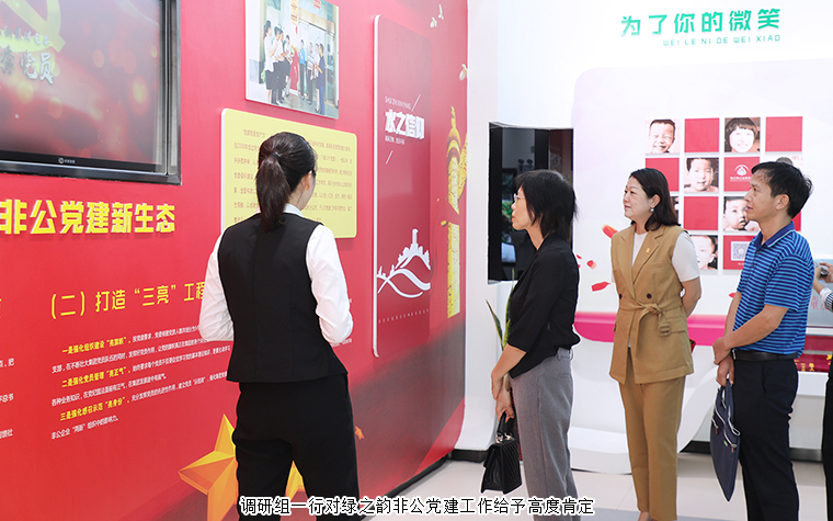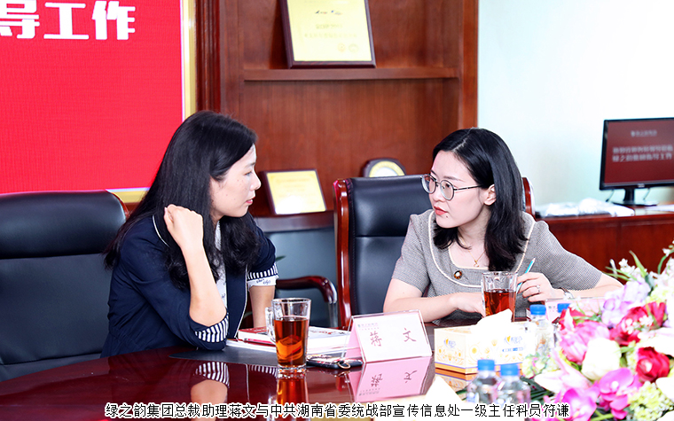 2020年9月16日,中共湖南省委統(tǒng)戰(zhàn)部宣傳信息處處長李蓉、副處長馮小明、一級主任科員符謙一行蒞臨綠之韻集團調(diào)研指導。綠之韻集團董事、總裁勞嘉,總裁助理蔣文陪同調(diào)研。