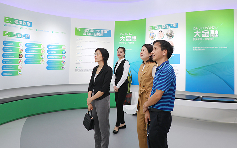 調(diào)研組一行參觀了綠之韻國際會議中心形象展示廳。展廳以綠之韻“水的精神”為貫穿構想,運用現(xiàn)代化、科技化、智能化的創(chuàng)新技術手段,全方位、多角度生動呈現(xiàn)了綠之韻十七年的發(fā)展歷程。綠之韻“以產(chǎn)品為導向”的發(fā)展理念、“水的精神和家文化”的企業(yè)特質以及誠實守信、產(chǎn)業(yè)富民、回饋社會的良好企業(yè)形象得到了調(diào)研組一行的肯定和贊譽。
