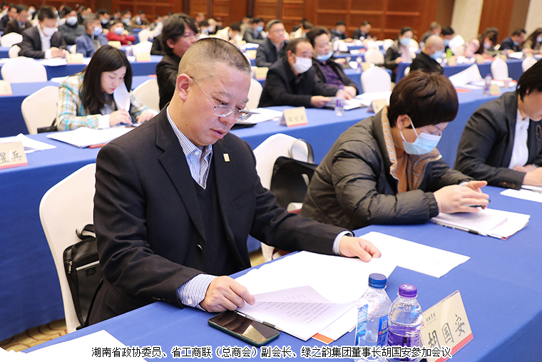 2021年1月21日,湖南省工商聯(lián)(總商會)十二屆四次常委會議、十二屆四次執(zhí)委會議在長沙成功召開。湖南省政協(xié)副主席、省工商聯(lián)主席張健,中共湖南省委統(tǒng)戰(zhàn)部副部長鄧煥生,中共湖南省委統(tǒng)戰(zhàn)部副部長、省工商聯(lián)黨組書記陳瀟,湖南省工商聯(lián)副主席李曦、吳曙光、楊廣林、漆平波和秘書長祝擁軍等領(lǐng)導(dǎo)出席會議。湖南省政協(xié)委員、湖南省工商聯(lián)(總商會)副會長、綠之韻集團(tuán)董事長胡國安以及全體常執(zhí)委及相關(guān)人員參加會議。中共湖南省委統(tǒng)戰(zhàn)部副部長、省工商聯(lián)黨組書記陳瀟主持會議。