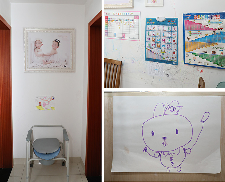 年輕的楊芳是一對(duì)雙胞胎女兒的媽媽。看著她瞇瞇的笑眼,你感覺不到雙胞胎媽媽背后的辛苦。兩個(gè)女兒2014年出生,其中一個(gè)小孩患有先天性腦發(fā)育不良癥狀,孩子的治療和康復(fù)費(fèi)用相當(dāng)高。楊芳辭去了原本的工作,專心在家照顧孩子,孩子們到了上學(xué)年齡,楊芳也是風(fēng)雨無阻接送。家里主要經(jīng)濟(jì)收入來源就是愛人打零工,因?yàn)榧彝ゾ唧w情況,楊芳愛人也只能在家附近做工方便照顧。盡管家中確實(shí)困難,但是父母的愛只多不少。走訪那天恰逢楊芳兩個(gè)女兒過生日,家里用氣球布置得十分溫馨,楊芳笑著說:孩子們期待了很久,想要邀請(qǐng)同學(xué)來家里玩。都說孩子們的生日是母親的受難日,楊芳卻覺得,孩子就是她生命中最珍貴的禮物。
