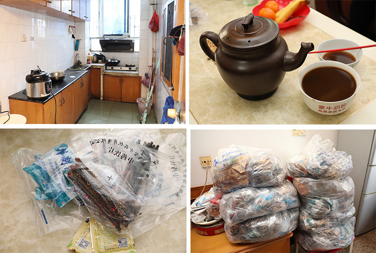 還沒走進(jìn)張媽媽家里,綠之韻愛心志愿者們就已經(jīng)聞到濃濃的中藥味道彌漫在空氣里。張媽媽一個(gè)人在家,但是家里收拾得井井有條。她2016年被確診乳腺癌中晚期,2018年開始惡化,長(zhǎng)期在醫(yī)院住院療養(yǎng)、放療、靶向治療,已經(jīng)花費(fèi)90余萬。走訪那天張媽媽剛?cè)メt(yī)院領(lǐng)完藥回來,由于并發(fā)癥的原因,她現(xiàn)在采取中西藥結(jié)合治療,一個(gè)月的中藥包在家里堆成了一座小山,茶幾上也是滿滿一大罐藥,張媽媽苦笑著說這還只是一天的量。因?yàn)榛疾∷辉瓎挝晦o退,現(xiàn)在屬于無業(yè)人員。幾年前與丈夫離異,還有一個(gè)兒子目前送外賣來維持家用,高昂的醫(yī)療費(fèi)讓一家人生活非常拮據(jù)?,F(xiàn)在的張媽媽每天把家里收拾好,藥香帶來的是一份苦也是一份希望,她盼望早點(diǎn)等到兒子結(jié)婚成家那天。