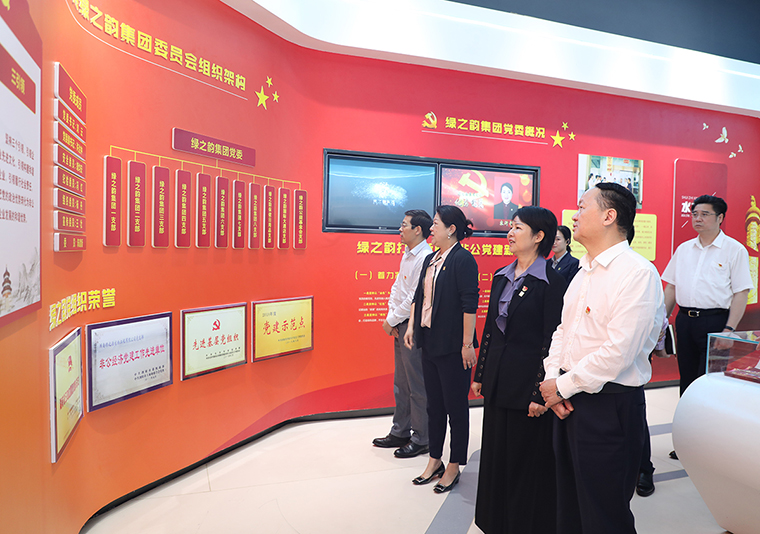 調(diào)研組一行先后參觀了綠之韻黨建文化教育基地和國際會(huì)議中心形象展示廳。在黨建文化教育基地,綠之韻集團(tuán)黨委書記劉云就非公黨建和黨史學(xué)習(xí)教育工作開展情況向調(diào)研組一行作匯報(bào)。綠之韻自2006年成立黨支部,2013年獲批成立黨總支部,2016年8月獲批成立黨委以來,始終堅(jiān)持以三色(紅色、金色、綠色)建設(shè)為策略,注重紅色基因塑造的新時(shí)代非公黨建新生態(tài),實(shí)施“指導(dǎo)式”“責(zé)任式”“溫情式”管理,充分發(fā)揮黨委的政治核心作用和黨員的先鋒模范作用,強(qiáng)力推進(jìn)企業(yè)健康、可持續(xù)性發(fā)展。為進(jìn)一步推動(dòng)黨史學(xué)習(xí)教育在企業(yè)走深走實(shí),今年以來,綠之韻集團(tuán)聚焦黨史學(xué)習(xí)教育重點(diǎn)內(nèi)容,緊緊圍繞“學(xué)史明理、學(xué)史增信、學(xué)史崇德、學(xué)史力行”目標(biāo)要求,統(tǒng)籌謀劃、精心組織,結(jié)合企業(yè)發(fā)展實(shí)際情況開展了多種形式的黨史學(xué)習(xí)教育主題活動(dòng),如雷鋒精神主題黨課教育、黨史專題學(xué)習(xí)宣講會(huì)、紅色共建主題實(shí)踐活動(dòng)以及黨史學(xué)習(xí)教育主題讀書日等活動(dòng),在集團(tuán)上下掀起了黨史學(xué)習(xí)教育的熱潮。調(diào)研組一行對(duì)綠之韻集團(tuán)在黨史學(xué)習(xí)教育工作中取得的階段性成效予以充分肯定。