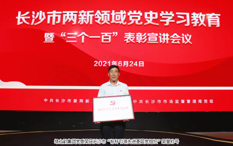 2021年6月24日,長沙市兩新領(lǐng)域黨史學習教育暨“三個一百”表彰宣講會召開。中共長沙市委常委、市委組織部部長張宏益,市政協(xié)副主席、民盟市委主委、市市場監(jiān)督管理局局長張慶和,中共長沙市委組織部副部長、兩新工委書記、基層辦主任楊俊,市民政局黨委書記、局長、市委兩新工委副書記陳昌佳,市市場監(jiān)督局黨組書記、市委兩新工委副書記邱山東,市委兩新工委專職副書記肖劍鋒等領(lǐng)導出席會議。綠之韻集團黨委副書記許達仲參加會議。會上,綠之韻集團黨委榮獲長沙市“標桿引領(lǐng)先進基層黨組織”榮譽稱號。