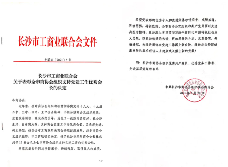 此次榮獲“支持商會(huì)黨建工作優(yōu)秀會(huì)長(zhǎng)”,胡國(guó)安董事長(zhǎng)表示,既是榮譽(yù),也是一份沉甸甸的責(zé)任。自2017年長(zhǎng)沙市安化商會(huì)成立以來(lái),作為商會(huì)會(huì)長(zhǎng),他攻堅(jiān)克難,盡職盡責(zé),主動(dòng)承擔(dān)社會(huì)責(zé)任,積極參與并引導(dǎo)廣大會(huì)員共同參與到精準(zhǔn)脫貧、鄉(xiāng)村振興、光彩事業(yè)和社會(huì)公益事業(yè)。未來(lái),他將繼續(xù)充分發(fā)揮會(huì)長(zhǎng)作用,認(rèn)真學(xué)習(xí)和貫徹黨的路線、方針、政策;積極履職盡責(zé),不斷推進(jìn)商會(huì)工作的規(guī)范化、制度化和創(chuàng)新發(fā)展,切實(shí)提高商會(huì)工作效率和服務(wù)水平,吸納更多的安化籍優(yōu)秀企業(yè)家入會(huì),把長(zhǎng)沙市安化商會(huì)打造成具有地方特色的知名商會(huì),為省市經(jīng)濟(jì)發(fā)展貢獻(xiàn)出商會(huì)力量。