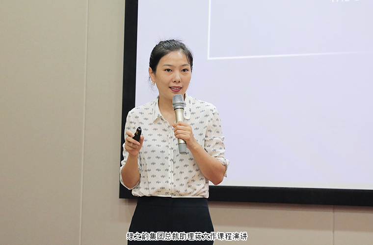 此次活動(dòng)還精心準(zhǔn)備了產(chǎn)品知識、行業(yè)法規(guī)、員工修養(yǎng)等內(nèi)容豐富的專業(yè)課程培訓(xùn)。道至簡教育集團(tuán)公司創(chuàng)辦人、全國優(yōu)秀培訓(xùn)師于元香老師特別帶來《成就公司就是成就自己》主題演講。在培訓(xùn)過程中,學(xué)員們認(rèn)真聆聽、積極互動(dòng)并作隨堂筆記。他們紛紛表示,培訓(xùn)內(nèi)容干貨滿滿、通俗易懂,讓人受益匪淺,并且會(huì)將今日所學(xué)所感落實(shí)到實(shí)際工作當(dāng)中,為共同的綠之韻事業(yè)做出積極貢獻(xiàn)。結(jié)業(yè)典禮上,學(xué)員們就此次培訓(xùn)內(nèi)容進(jìn)行了精彩的成果匯報(bào)。綠之韻集團(tuán)董事總裁勞嘉、道至簡教育集團(tuán)創(chuàng)辦人于元香、人力資源部總監(jiān)皮勁分別為優(yōu)秀團(tuán)隊(duì)、優(yōu)秀學(xué)員和組長頒獎(jiǎng),獲獎(jiǎng)代表朱亞喬、張娜發(fā)表獲獎(jiǎng)感言。