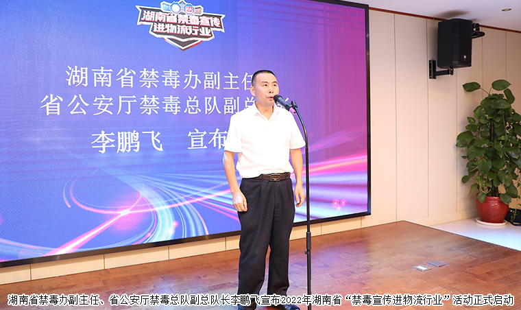 啟動(dòng)儀式由湖南省物流與采購聯(lián)合會(huì)副會(huì)長兼秘書長申建華主持。會(huì)上,湖南省物流與采購聯(lián)合會(huì)會(huì)長尹國杰為活動(dòng)致辭。湖南省禁毒協(xié)會(huì)會(huì)長董瑛致辭。她表示,隨著禁毒嚴(yán)打的不斷深入和新冠疫情常態(tài)化,線上交易線下交貨、人貨分離、“互聯(lián)網(wǎng)+物流寄遞”已經(jīng)成為新時(shí)期毒品販賣的主要手段,物流行業(yè)成為禁毒工作的重要戰(zhàn)場。因此,為全面筑牢物流行業(yè)禁毒防護(hù)墻,從源頭上加強(qiáng)物流企業(yè)涉毒防范,加強(qiáng)物流行業(yè)禁毒宣傳教育意義重大。隨后,湖南省公安廳禁毒總隊(duì)二級高級警長、預(yù)防教育支隊(duì)支隊(duì)長彭國清介紹湖南省“禁毒宣傳進(jìn)物流行業(yè)”活動(dòng)內(nèi)容。湖南省禁毒辦副主任、省公安廳禁毒總隊(duì)副總隊(duì)長李鵬飛宣布2022年湖南省“禁毒宣傳進(jìn)物流行業(yè)”活動(dòng)正式啟動(dòng)。