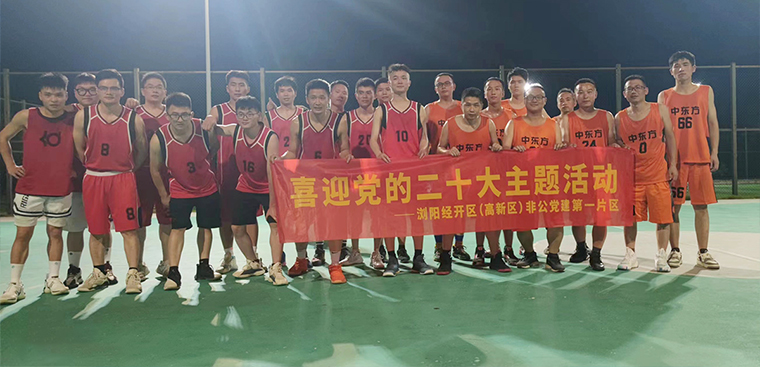 為豐富職工群眾精神文化生活,喜迎黨的二十大,瀏陽經(jīng)開區(qū)非公黨建第一片區(qū)開展了“迎‘籃’而上,追‘球’夢想”主題黨日活動。2022年9月15日,瀏陽經(jīng)開區(qū)非公黨建第一片區(qū)為比賽獲獎隊伍舉行了頒獎儀式。瀏陽經(jīng)開區(qū)黨工委委員、管委會副主任、企業(yè)黨委書記何六生,瀏陽經(jīng)開區(qū)企業(yè)黨委委員、聯(lián)絡(luò)科科長胡曉江,綠之韻集團黨委書記劉云以及第一片區(qū)17個企業(yè)的各支部書記參加頒獎儀式。
