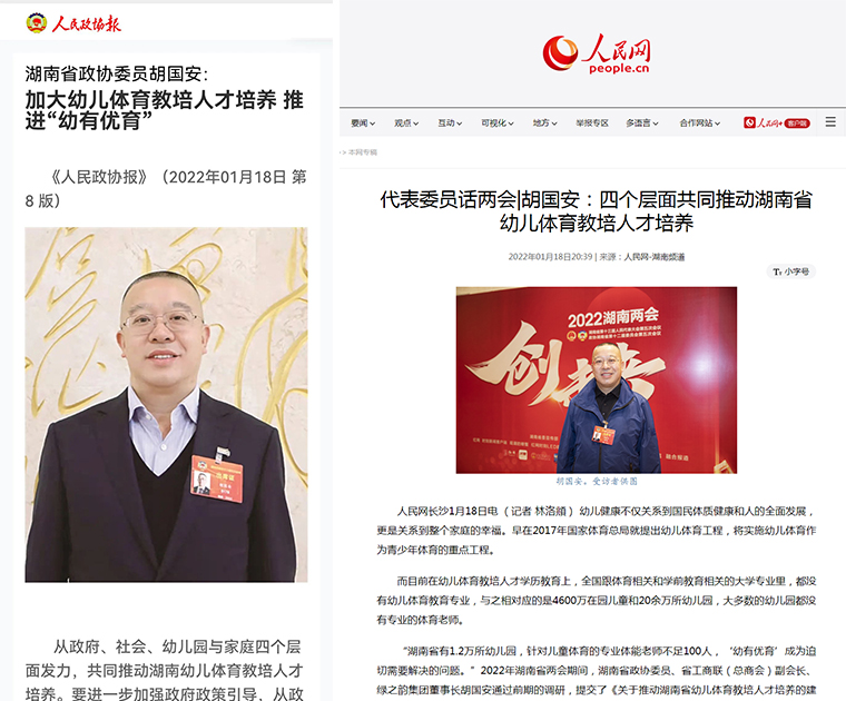 作為一名省政協(xié)委員,履職十多年來(lái),胡國(guó)安董事長(zhǎng)深入社區(qū)民情,積極參政議政,為湖南省經(jīng)濟(jì)發(fā)展獻(xiàn)計(jì)獻(xiàn)策,共提交了40份左右有價(jià)值的政協(xié)提案,涉及民創(chuàng)企業(yè)、青少年教育、扶危濟(jì)貧、健康養(yǎng)老、疾病預(yù)防、省市區(qū)發(fā)展等多個(gè)方面。2022年湖南省兩會(huì)期間,胡國(guó)安委員通過(guò)前期的調(diào)研,提交了《關(guān)于推動(dòng)湖南省幼兒體育教培人才培養(yǎng)的建議》提案。針對(duì)湖南省幼兒園一般沒(méi)有專(zhuān)職體育教師、幼兒體育教培機(jī)構(gòu)的教師來(lái)源復(fù)雜、幼兒體育教培機(jī)構(gòu)中兼職教師的比例高等問(wèn)題,他提出建議從政府、社會(huì)、幼兒園與家庭四個(gè)層面發(fā)力,共同推動(dòng)湖南省幼兒體育教培人才培養(yǎng)。長(zhǎng)沙師范學(xué)院體育學(xué)院高度重視該提案的社會(huì)效應(yīng),胡國(guó)安委員多次親自率領(lǐng)團(tuán)隊(duì)深入長(zhǎng)沙師范學(xué)院就學(xué)前體育教師教育和幼兒體育事業(yè)發(fā)展進(jìn)行調(diào)研。為感謝胡國(guó)安董事長(zhǎng)對(duì)長(zhǎng)沙師范學(xué)院教育事業(yè)的支持,會(huì)上,長(zhǎng)沙師范學(xué)院黨委副書(shū)記、校長(zhǎng)曹曉鮮向胡國(guó)安董事長(zhǎng)授予“長(zhǎng)沙師范學(xué)院榮譽(yù)校友”證書(shū)。