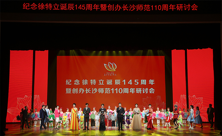 秋日的長沙師范校園里,到處洋溢著節(jié)日的氣氛。長沙師范學院校旗、各學院院旗和各地校友會會旗迎風飄揚。2022年9月25日,紀念徐特立誕辰145周年暨創(chuàng)辦長沙師范學院110周年研討會在田漢實驗劇院隆重舉行。一校兩區(qū)師生員工、海內外校友和關心長沙師范學院發(fā)展的各界人士匯聚一堂,共襄盛事,共同見證長沙師范學院百年榮光。