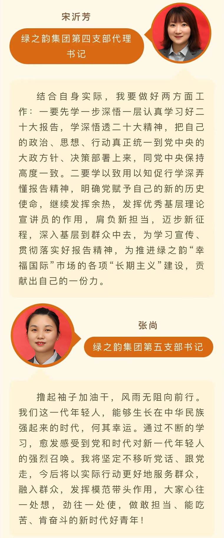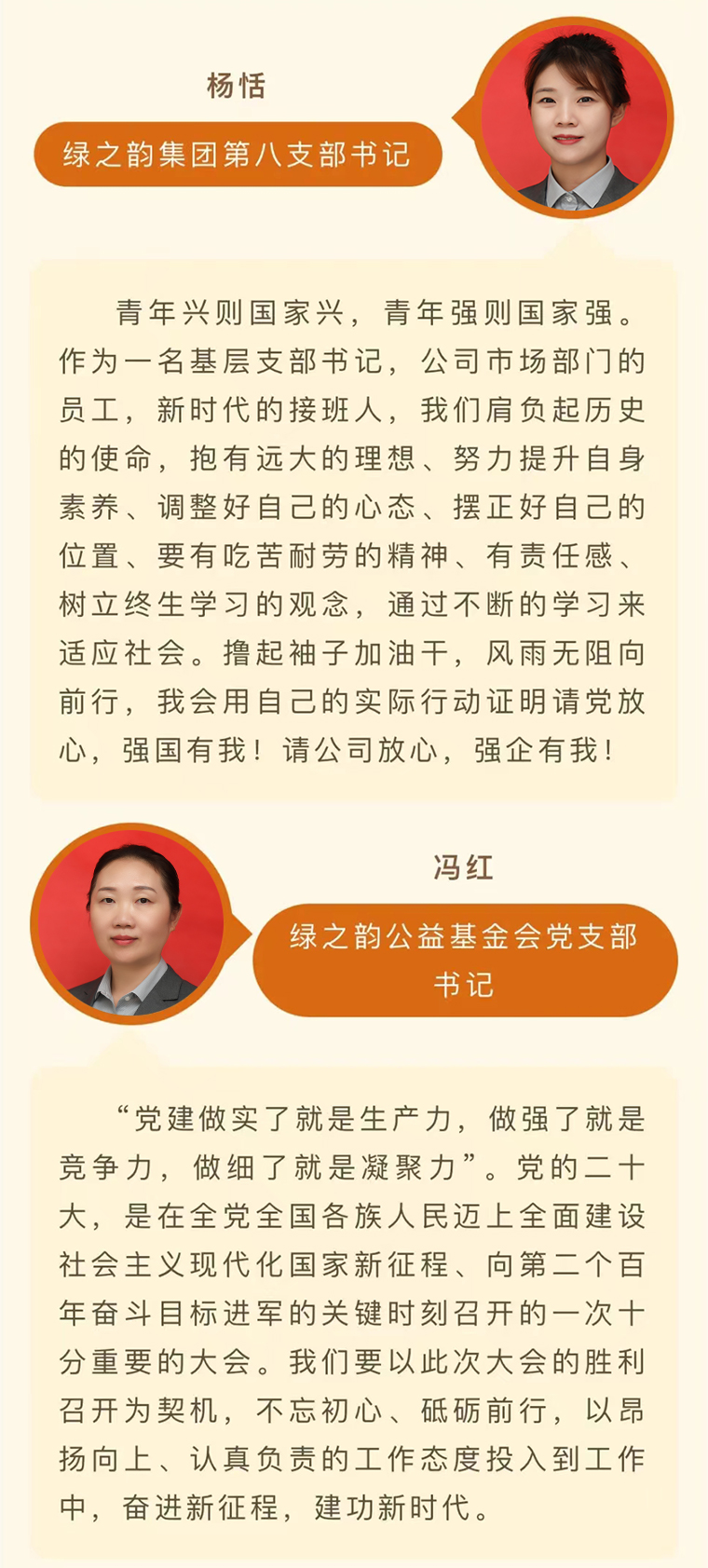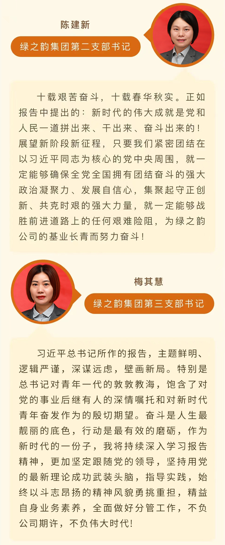 10月16日上午,中國(guó)共產(chǎn)黨第二十次全國(guó)代表大會(huì)在京召開(kāi),習(xí)近平總書(shū)記代表第十九屆中央委員會(huì)向大會(huì)作報(bào)告。開(kāi)幕會(huì)結(jié)束后,綠之韻集團(tuán)黨員、高管第一時(shí)間開(kāi)展學(xué)習(xí),領(lǐng)會(huì)報(bào)告精神,掀起討論熱潮 ……