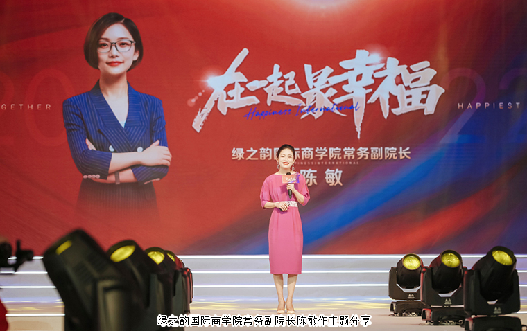 隨后,綠之韻國(guó)際商學(xué)院常務(wù)副院長(zhǎng)陳敏作《在一起,最幸?!返闹黝}分享,與綠之韻事業(yè)伙伴們一起回顧了綠之韻幸福國(guó)際第一個(gè)三年成長(zhǎng)路上的幸福縮影。