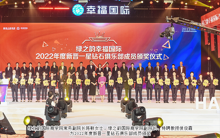 在幸福的道路上,有這樣一群堅(jiān)實(shí)的守護(hù)者,他們心懷熱愛(ài),步履不停,用夢(mèng)想融合新生,用榮耀成就巔峰,他們是為幸福奮斗的高階精英,他們是本次進(jìn)入鉆石俱樂(lè)部的最強(qiáng)王者。勇者無(wú)畏,破繭成蝶,迎來(lái)屬于他們的鉆石榮耀之旅。綠之韻集團(tuán)董事、總裁勞嘉,綠之韻集團(tuán)副總裁胡均安,綠之韻國(guó)際商學(xué)院執(zhí)行院長(zhǎng)黎芋成,綠之韻國(guó)際商學(xué)院常務(wù)副院長(zhǎng)陳敏,綠之韻國(guó)際商學(xué)院副院長(zhǎng)、特聘教授侯俊霞分別為綠之韻幸福國(guó)際2022年度新晉一星、二星、三星鉆石俱樂(lè)部成員頒獎(jiǎng),獲獎(jiǎng)?wù)哧悤詵|、蘇裕涵、林景云分享獲獎(jiǎng)感言。