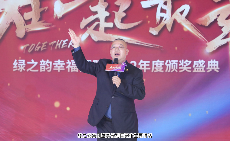 “路雖遠(yuǎn),行必至,事雖難,做必成”,大會(huì)最后,在全場(chǎng)最為熱烈的掌聲中,綠之韻集團(tuán)董事長(zhǎng)胡國(guó)安上臺(tái)向所有幸福代言人贈(zèng)寄語(yǔ)牌匾,并講話。他首先向大會(huì)現(xiàn)場(chǎng)以及通過(guò)在線互動(dòng)視頻觀看本次大會(huì)盛況的綠之韻家人致以熱烈的歡迎和誠(chéng)摯的問(wèn)候,并向每一位獲獎(jiǎng)?wù)弑硎緹崃业淖YR。他表示,感謝每一位奮斗的幸福代言人,三年來(lái),你們不畏艱難、不辭辛勞、不懼疫情,用不同形式,在不同地點(diǎn),全力的傳播著公司的企業(yè)文化,傳承中華五千年養(yǎng)生文化,積極推動(dòng)科技讓中醫(yī)養(yǎng)生走進(jìn)千家萬(wàn)戶的理念,為你們點(diǎn)贊!向所有的幸福代言人致敬!你們奮斗的身影,是2022最美的風(fēng)景!回看來(lái)路,繁花似錦;瞻望前程,乘風(fēng)鼓翼。乘著黨的二十大與兩會(huì)勝利召開(kāi)的浩蕩東風(fēng),我們滿懷激情的跨入充滿希望的2023年。在一起,最幸福,伴著市場(chǎng)環(huán)境加速回暖、營(yíng)商環(huán)境持續(xù)優(yōu)化的鏗鏘足音,未來(lái)三年,在集團(tuán)公司的全力支持下,在現(xiàn)場(chǎng)每一位和通過(guò)視頻收看的綠之韻家人的支持下,我們一定能在新起點(diǎn)上再創(chuàng)新輝煌!