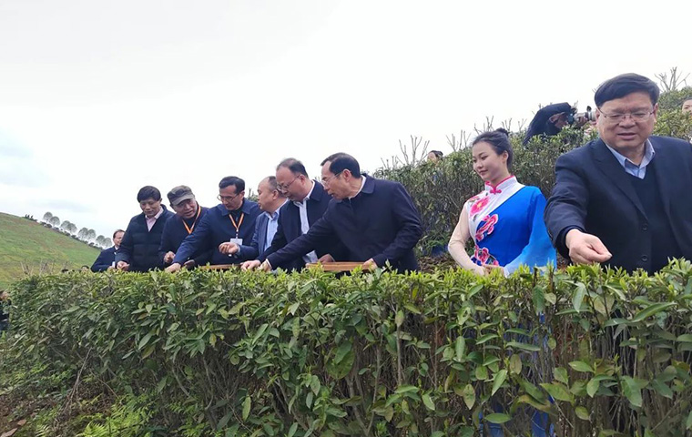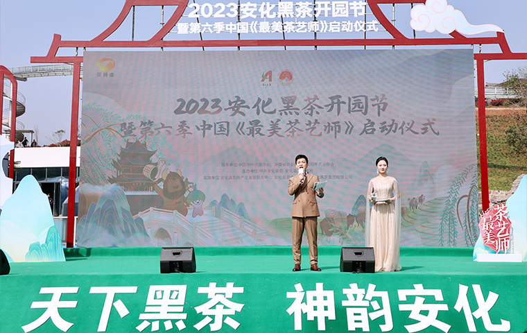 中共安化縣委書(shū)記石錄明致歡迎辭。人與人的相遇莫過(guò)于久別重逢,人與茶的相遇便是前世今生。非常榮幸,今天由我用一盞茶的時(shí)間與大家一同品味安化獨(dú)特的詩(shī)和遠(yuǎn)方。從春天出發(fā),用一盞茶的時(shí)間,感受萬(wàn)里茶路馬蹄聲的古道茶香之美。從春天出發(fā),用一盞茶的時(shí)間,領(lǐng)略高山流水遇知音的山水畫(huà)卷之美。從春天出發(fā),用一盞茶的時(shí)間,縱享十步之內(nèi)有芳草的人杰地靈之美。安化黑茶開(kāi)園節(jié)的舉辦,標(biāo)志著安化36萬(wàn)畝茶園進(jìn)入了全面開(kāi)采期。人生如茶,希望我們都能從春天出發(fā),從安化出發(fā),一起赴一場(chǎng)春日采茶的清新之旅。