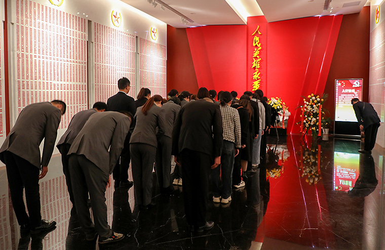 山河無恙,英雄不朽。隨后,各黨支部成員前往博物館二樓英烈廳進(jìn)行了莊重的獻(xiàn)花籃、祭奠儀式,向英烈廳鐫刻的17030名為中華民族獨(dú)立和解放事業(yè)英勇獻(xiàn)身的烈士默哀,緬懷他們的豐功偉績,繼承革命先烈遺志,激發(fā)守初心、擔(dān)使命、永奮斗的強(qiáng)大力量。祭奠儀式后,大家紛紛表示,要珍惜革命先烈用鮮血和生命換來的和平環(huán)境,將先烈們不畏艱苦、無私奉獻(xiàn)的精神貫穿到日常工作中,繼承革命先烈之精神、勇?lián)礃I(yè)奮斗之使命,在平凡崗位上全力以赴,用實(shí)際行動(dòng)畫就新時(shí)代壯美藍(lán)圖。