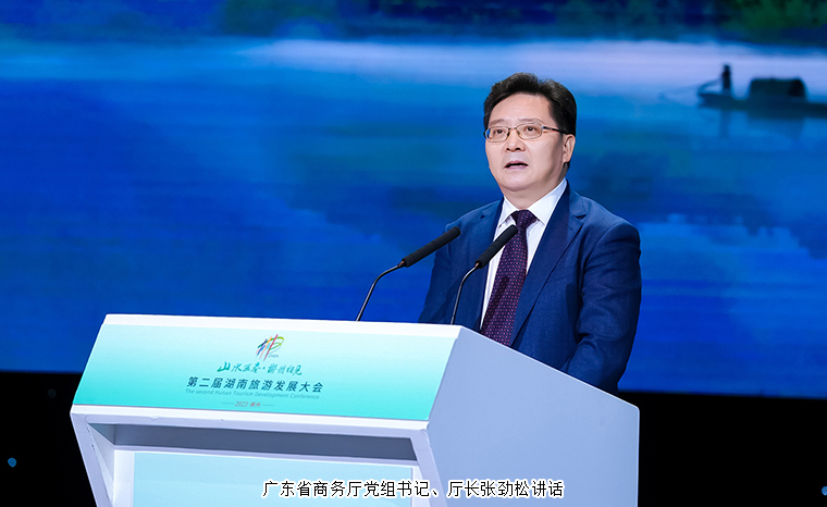 大會伊始,中共郴州市委書記吳巨培致歡迎詞并作郴州市文旅推薦。隨后,廣東省商務(wù)廳黨組書記、廳長張勁松講話。他表示,湖南和廣東在國家發(fā)展大局中都具有重要地位。廣東和湖南地緣相近,經(jīng)濟相融,兩地要加強合作,互相支持,潛力巨大。山水畫卷,郴州相見。我們眺望“芙蓉國里盡朝暉”的瀟湘大地,品讀“萬水千山總是情”的郴州畫卷。山鄉(xiāng)似水,林中之意,展示給我們的不僅僅是山水之美,還有人文之美,更是心靈之美。今年9月,第二屆湖南旅發(fā)大會將在郴州舉辦,今天我們在這里相會,也是從這里出發(fā),向著天下第十八福地郴州去度過一段難忘的幸福時光。