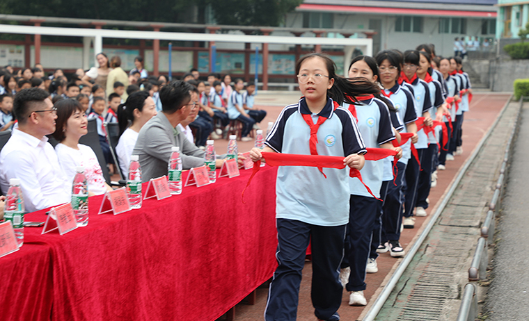 儀式開始前,領(lǐng)導(dǎo)嘉賓實地參觀了學(xué)校基礎(chǔ)設(shè)施建設(shè)及辦學(xué)條件,3名不同年級的學(xué)生代表作為小小講解員,從學(xué)校文化長廊到校史長廊條理清晰地為嘉賓們講述大橋?qū)W校辦學(xué)歷史和辦學(xué)特色?;顒右潦?,少先隊員代表為到場嘉賓佩戴紅領(lǐng)巾,行隊禮,用最質(zhì)樸的行動向所有愛心人士表達最真摯的感謝。