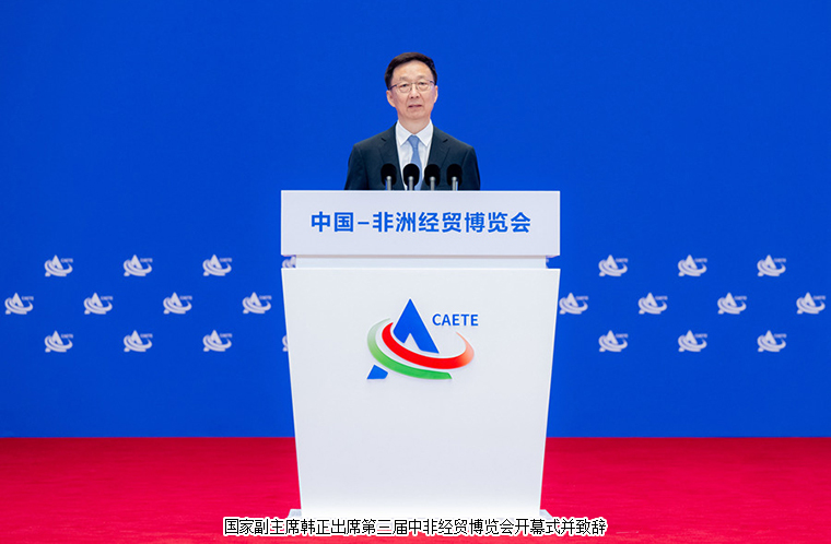 國(guó)家副主席韓正表示,設(shè)立中國(guó)-非洲經(jīng)貿(mào)博覽會(huì),是習(xí)近平主席親自批準(zhǔn)的重大對(duì)非合作舉措。2013年3月,習(xí)主席出訪非洲時(shí),首次提出真實(shí)親誠(chéng)對(duì)非政策理念和正確義利觀。十年來,無論國(guó)際風(fēng)云如何變幻,中非始終真誠(chéng)友好、團(tuán)結(jié)合作,高層交往更加密切,合作規(guī)模不斷擴(kuò)大,合作領(lǐng)域持續(xù)拓展,結(jié)成休戚與共的命運(yùn)共同體和合作共贏的利益共同體,取得了豐碩成果,造福了中非廣大人民。他指出,當(dāng)今世界,多重挑戰(zhàn)和危機(jī)交織疊加,發(fā)展鴻溝不斷拉大。中方愿以中國(guó)式現(xiàn)代化和中國(guó)高質(zhì)量發(fā)展為非方提供新機(jī)遇,推動(dòng)中非務(wù)實(shí)合作走深走實(shí)。中方堅(jiān)定支持非洲走獨(dú)立自主的發(fā)展道路,將深入推進(jìn)中非共建“一帶一路”合作,同非洲國(guó)家持續(xù)深化戰(zhàn)略對(duì)接、加強(qiáng)產(chǎn)業(yè)鏈供應(yīng)鏈合作、著力提升聯(lián)通水平、共同聚焦可持續(xù)發(fā)展、堅(jiān)定推進(jìn)開放發(fā)展,推動(dòng)構(gòu)建更加緊密的中非命運(yùn)共同體。他表示,中非合作不斷向全方位、多層次、高質(zhì)量發(fā)展,在南南合作和國(guó)際對(duì)非合作中發(fā)揮著重要引領(lǐng)作用,為構(gòu)建新型國(guó)際關(guān)系樹立了典范。本屆博覽會(huì)將為中非雙方打造對(duì)接交流、探討合作的良好平臺(tái)。歡迎中非各界積極參與博覽會(huì)活動(dòng),共同譜寫中非經(jīng)貿(mào)合作高質(zhì)量發(fā)展新篇章,共享新時(shí)代繁榮發(fā)展新未來。