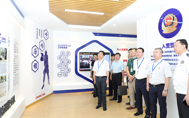 2019年7月17日,長(zhǎng)沙市公安局特邀形象監(jiān)督員、綠之韻集團(tuán)副總裁胡均安陪同長(zhǎng)沙市公安局黨委委員、副局長(zhǎng)徐波躍,黨委委員、政治部主任陳定佳;特巡警支隊(duì)黨委書(shū)記、支隊(duì)長(zhǎng)歐陽(yáng)偉沙,市公安局機(jī)關(guān)紀(jì)委書(shū)記王海清等一行赴長(zhǎng)沙市公安局特巡警支隊(duì)調(diào)研。