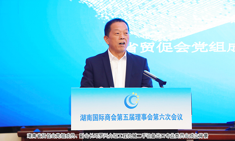 與會成員及單位就湖南國際商會增補會員單位名單、會長候選人情況、第六屆會員代表大會議程、會員代表產(chǎn)生辦法、成立換屆選舉委員會、理事(單位)名單,相關(guān)財務(wù)管理制度等事宜進行了審議。會上,還舉辦了湖南國際商會工程機械二手設(shè)備出口專業(yè)委員會、跨境貿(mào)易專業(yè)委員會成立揭牌儀式。湖南省貿(mào)促會黨組成員、副會長,湖南國際商會副會長鄧羅興介紹工程機械二手設(shè)備出口專業(yè)委員會成立背景、工作內(nèi)容等情況。