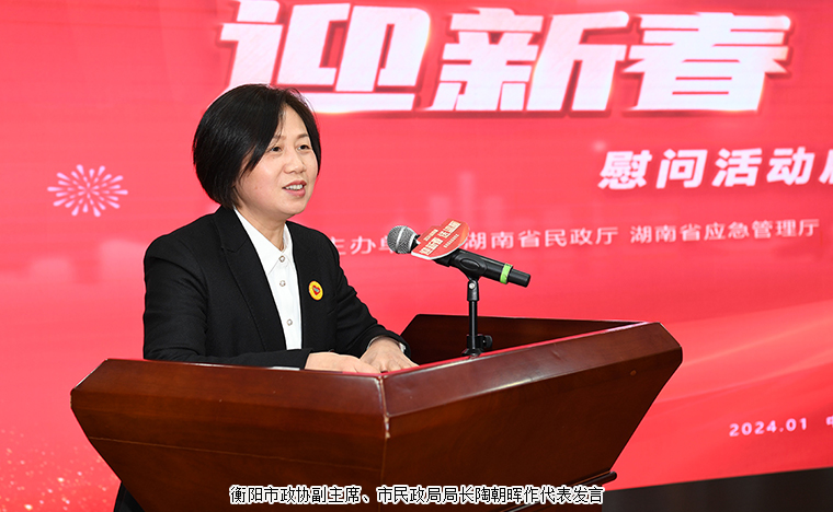 湖南省民政廳廳長黃東紅講話。她表示,春節(jié)將至,幫助困難群眾溫暖過冬、祥和過年是各級黨委政府的最大牽掛。湖南連續(xù)20年開展“迎新春 送溫暖”慰問活動,近5年累計籌集慈善款物20多億元,走訪慰問300多萬戶次。今年,省民政廳聯(lián)合省應急管理廳、省糧食和物資儲備局、省慈善總會通過線下走訪、線上籌募等形式,統(tǒng)籌整合省市縣三級財政資金、社會捐贈款物近3.5億元,將在全省范圍內走訪慰問53.6萬戶困難群眾,幫助他們溫暖過冬、快樂過年。希望全社會行動起來,共同奉獻愛心,共同關心困難群眾,共同推進民生升溫,一起為加快實現(xiàn)“三高四新”美好藍圖、建設現(xiàn)代化新湖南作出更大的貢獻!