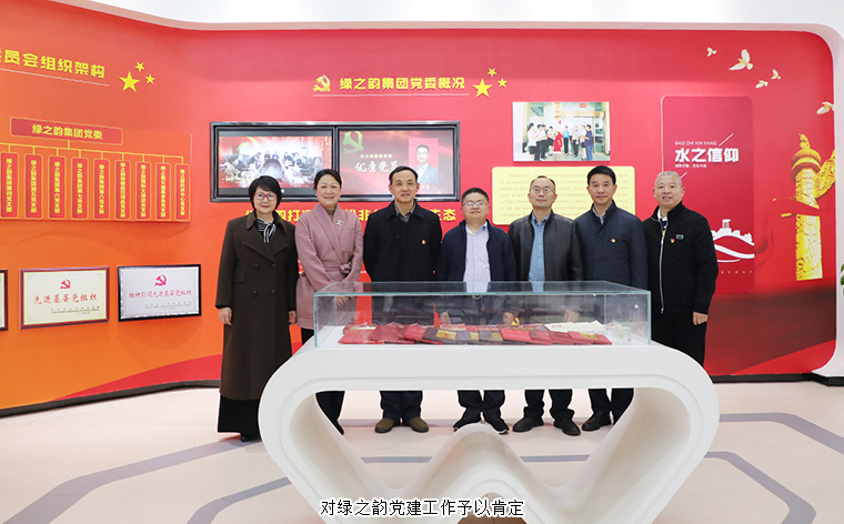 隨后,領(lǐng)導(dǎo)一行來到綠之韻集團,參觀了國際會議中心展廳、黨建文化教育基地。勞嘉總裁詳細講解了綠之韻集團的產(chǎn)業(yè)布局、產(chǎn)品生產(chǎn)、文化品牌建設(shè)、公益慈善活動及非公黨建工作的開展情況。領(lǐng)導(dǎo)一行對綠之韻深耕大健康產(chǎn)業(yè)、積極投身公益慈善事業(yè)及“家的文化、水的精神”的企業(yè)文化理念給予高度評價和贊許。