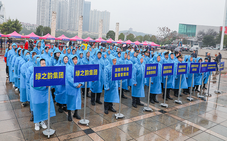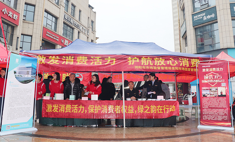為深入貫徹《中華人民共和國消費(fèi)者權(quán)益保護(hù)法》《湖南省消費(fèi)者權(quán)益保護(hù)條例》,營造安全放心的消費(fèi)環(huán)境,2024年3月15日,瀏陽市3·15國際消費(fèi)者權(quán)益日活動在瀏陽河廣場舉行。瀏陽市人民政府副市長黃剛,瀏陽市市場監(jiān)督管理局局長、瀏陽市消費(fèi)者委員會會長孫玉樟,瀏陽市市場監(jiān)督管理局黨組成員、副局長楊輝等領(lǐng)導(dǎo)參加活動。湖南省市場監(jiān)督管理局特邀行風(fēng)監(jiān)督員、綠之韻集團(tuán)總裁勞嘉、常務(wù)副總裁胡均安帶領(lǐng)員工代表和經(jīng)銷商代表參加活動。