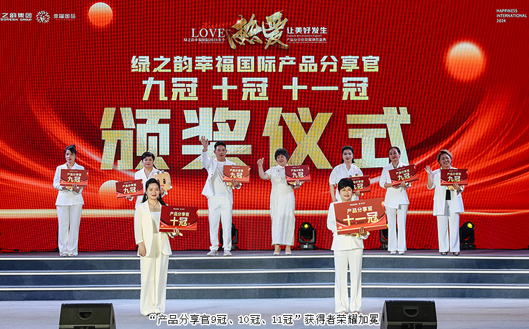 有人說,世界是由熱愛者創(chuàng)造的,每個劃時代的第一步,都是源自熱愛的驅(qū)動。在“科技讓中醫(yī)養(yǎng)生進萬家”這條充滿挑戰(zhàn)的路上,他們懷揣熱愛,不斷向前,走過了一段又一段泥濘和崢嶸,創(chuàng)造了一個又一個奇跡和光榮,贏得了綠之韻幸福國際“產(chǎn)品分享官”的稱號。在現(xiàn)場千余名綠之韻幸福國際家人們的見證下,“產(chǎn)品分享官3冠、4冠、5冠”獲得者身著盛裝,在星光閃爍中走上舞臺,共享榮耀時刻。