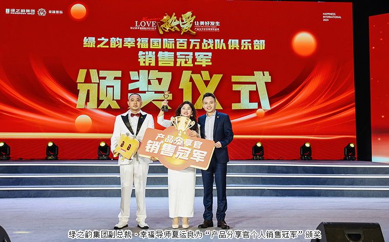 他們,用奮斗到最后一秒的堅持,全力以赴的拼搏,毫無保留的交付,上下一心的團結(jié),不甘平庸的進取,將每一份熱愛化作滋養(yǎng)生命的能量。他們,始終火力全開馳騁在市場一線,永遠奔跑在沖刺目標(biāo)的道路上;他們,從未膽怯、迎難而上,帶領(lǐng)自己的團隊勇攀一個又一個高峰。綠之韻集團副總裁、幸福導(dǎo)師夏運良為“產(chǎn)品分享官個人銷售冠軍”頒獎。幸福代言人黃永志、肖純芬伉儷分享獲獎感言。綠之韻國際商學(xué)院常務(wù)副院長、綠之韻集團運營部執(zhí)行總經(jīng)理陳敏,綠之韻健康專家委員會專家委員、綠之韻幸福國際市場商學(xué)院院長侯俊霞為“2024年一季度百萬戰(zhàn)隊”頒獎。綠之韻國際商學(xué)院執(zhí)行院長黎芋成為“2024年一季度百萬戰(zhàn)隊冠軍”頒獎。