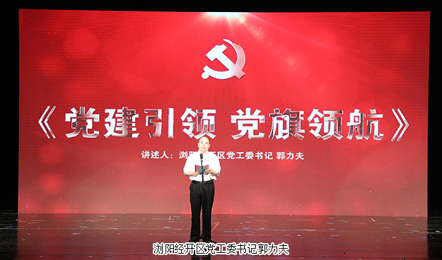 瀏陽經(jīng)開區(qū)黨工委書記郭力夫以“黨建引領(lǐng),黨旗領(lǐng)航”為主題發(fā)表講話。他首先代表瀏陽經(jīng)開區(qū)黨工委向受到表彰的黨建示范點、先進(jìn)基層黨組織和優(yōu)秀共產(chǎn)黨員表示熱烈的祝賀。他表示,此次表彰活動旨在進(jìn)一步貫徹落實黨的十九大精神,高舉新時代中國特色社會主義思想的偉大旗幟,促進(jìn)園區(qū)高質(zhì)量發(fā)展,匯聚磅礴力量。未來,瀏陽經(jīng)開區(qū)將繼續(xù)堅持黨建引領(lǐng),推動園區(qū)轉(zhuǎn)型升級,突出“產(chǎn)業(yè)項目建設(shè)年”“營商環(huán)境優(yōu)化年”“黨支部建設(shè)年”的工作主線,不斷開創(chuàng)園區(qū)工作的新局面,以實際行動為黨旗爭輝添彩,為發(fā)展建功立業(yè)。