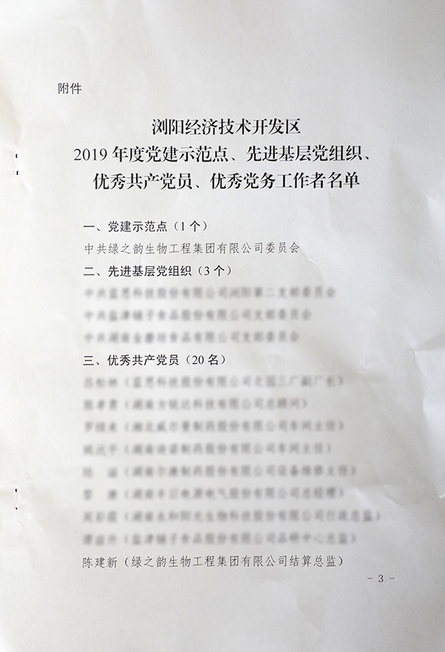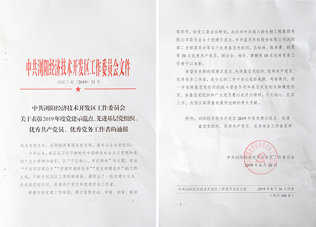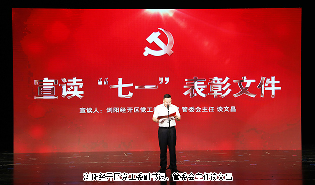 2019年6月27日,瀏陽經(jīng)開區(qū)黨工委在瀏陽金陽文化藝術(shù)中心召開2019年“七一”表彰大會。瀏陽經(jīng)開區(qū)黨工委書記郭力夫,瀏陽經(jīng)開區(qū)黨工委副書記、管委會主任談文昌以及全體黨委領(lǐng)導(dǎo)、機(jī)關(guān)黨員、非公經(jīng)濟(jì)黨組織負(fù)責(zé)人、優(yōu)秀黨員和2019年度新發(fā)展的預(yù)備黨員參加會議。綠之韻集團(tuán)黨委書記劉云、黨委副書記許達(dá)仲帶領(lǐng)集團(tuán)優(yōu)秀黨務(wù)工作者、優(yōu)秀黨員、預(yù)備黨員參加會議。