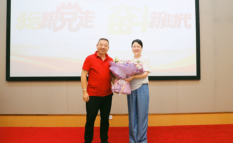 綠之韻集團黨委委員、業(yè)務服務中心業(yè)務總經(jīng)理陳建新?lián)位顒又鞒?。活動伊始,與會黨員通過主題視頻學習建黨節(jié)由來,溫習黨性知識,共同回顧中國共產(chǎn)黨波瀾壯闊103載的奮斗歷程。會上,綠之韻集團黨委委員楊丹作上半年黨委各支部活動開展情況匯報及下半年黨委工作安排。隨后,大會舉行新黨員宣誓儀式。黨員代表梁淑琳、羅永帥作分享,綠之韻集團第二黨支部書記陳建新、保健日用品黨支部書記楊丹分別為預備黨員羅瓊蕾、許長征佩戴黨徽、發(fā)放黨章。2024 年入黨積極分子代表李軍作分享發(fā)言?;顒蝇F(xiàn)場,綠之韻集團黨委為所有在司黨員發(fā)放政治生日賀卡,合唱《沒有共產(chǎn)黨就沒有新中國》,共同慶賀黨的生日,現(xiàn)場一片濃厚的愛國愛黨氛圍。