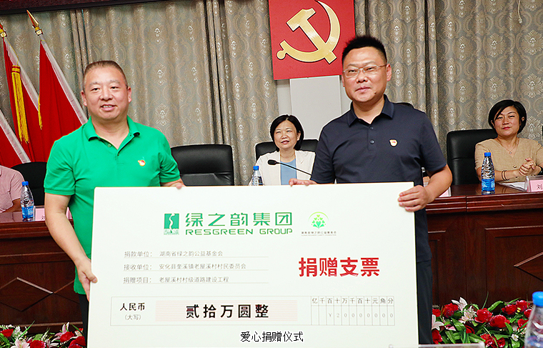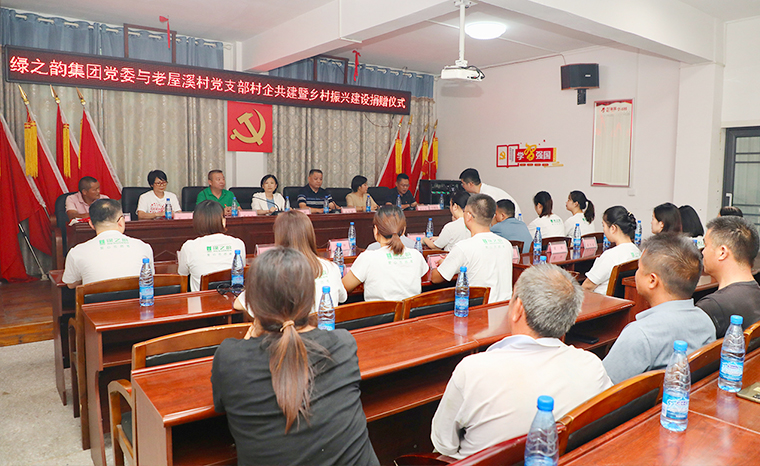 會上,綠之韻集團(tuán)常務(wù)副總裁、綠之韻公益基金會副理事長胡均安代表綠之韻公益基金會向老屋溪村捐贈20萬元愛心款項。胡均安常務(wù)副總裁表示,作為一名安化籍企業(yè)家,同時也是一名安化縣人大代表,積極投身到建設(shè)家鄉(xiāng)的事業(yè)中去,是他與生俱來的責(zé)任與使命。多年來,鄉(xiāng)村振興一直是綠之韻公益基金會的重要關(guān)注點之一,而他也一直最關(guān)心和牽掛家鄉(xiāng)安化的建設(shè)。綠之韻先后在安化投資建設(shè)黃精、杜仲等中藥材種植基地,捐建水電、道路、橋梁、生活廣場等硬件設(shè)施,為老人、婦女進(jìn)行免費的兩癌篩查,為學(xué)校捐建校車、圖書、體育設(shè)備,為孩子們設(shè)立獎教獎學(xué)金,累計捐贈款物1000多萬,全方位支持家鄉(xiāng)鄉(xiāng)村振興建設(shè)、文化教育事業(yè)發(fā)展。今年5月20日,綠之韻集團(tuán)在長沙人文地標(biāo)橘子洲舉行3000人綠跑大型公益品牌活動,現(xiàn)場捐贈100萬元愛心款項至綠韻圓夢公益項目。其中,捐贈20萬用于奎溪鎮(zhèn)老屋溪村村級道路建設(shè)項目,改善當(dāng)?shù)亟煌顩r,促進(jìn)經(jīng)濟發(fā)展,幫助老屋溪村的居民打開致富路、安心路、幸福路,提高家鄉(xiāng)人民的幸福感、獲得感、滿足感。此次,綠之韻集團(tuán)黨委一行來到安化尋夢初心、飲水思源,希望各位優(yōu)秀的黨支部書記、黨員代表充分發(fā)揮先鋒模范作用,與老屋溪村共建聯(lián)誼,盡己所能,將企業(yè)發(fā)展成果惠及家鄉(xiāng)人民,也希望有更多有愛心的人士和企業(yè)也能夠參與到愛心公益事業(yè)中來,大力支持家鄉(xiāng)各項事業(yè)發(fā)展,為建設(shè)新時代高質(zhì)量、富饒美麗的安化貢獻(xiàn)一份力量。