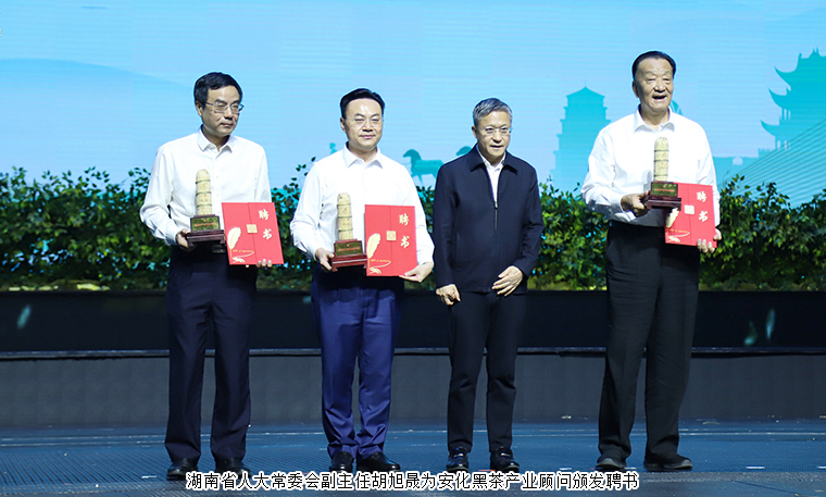 中共湖南省委常委、常務(wù)副省長(zhǎng)張迎春,湖南省人大常委會(huì)副主任、致公黨湖南省委會(huì)主委胡旭晟,湖南省政協(xié)副主席肖百靈,湖南省農(nóng)業(yè)農(nóng)村廳黨組書記、廳長(zhǎng)王建球,湖南省供銷合作總社黨組成員、理事會(huì)副主任張軍;中共益陽(yáng)市委副書記、市長(zhǎng)熊煒;中國(guó)茶葉流通協(xié)會(huì)會(huì)長(zhǎng)、全國(guó)茶葉標(biāo)準(zhǔn)化技術(shù)委員會(huì)主任委員王慶等領(lǐng)導(dǎo)出席。此次活動(dòng)邀請(qǐng)了國(guó)家部委、省市相關(guān)單位、茶界專家、學(xué)者及省內(nèi)行業(yè)組織、企業(yè)家代表、媒體記者、網(wǎng)絡(luò)主播、社會(huì)各界代表近千人參加。其中,30多名國(guó)際嘉賓來(lái)自韓國(guó)、俄羅斯、馬來(lái)西亞、英國(guó)、印尼、澳大利亞等國(guó)家和地區(qū)。長(zhǎng)沙市人大代表、長(zhǎng)沙市安化商會(huì)會(huì)長(zhǎng)、綠之韻集團(tuán)董事長(zhǎng)胡國(guó)安受邀出席開幕式,與國(guó)內(nèi)外嘉賓貴客和茶人朋友以茶為名共襄盛舉,共同助推黑茶產(chǎn)業(yè)高質(zhì)量發(fā)展。