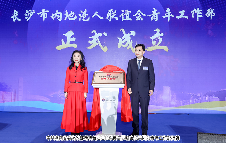 長沙市內(nèi)地港人聯(lián)誼會(huì)會(huì)長、湖南高橋大市場股份有限公司總經(jīng)理、華誼兄弟(長沙)電影文化城有限公司董事長羅曉發(fā)表致辭并宣布長沙市內(nèi)地港人聯(lián)誼會(huì)青年工作部正式成立。她表示,青年是國家的未來,是民族的希望,也是聯(lián)誼會(huì)不斷發(fā)展壯大的重要力量。成立青年工作部,是順應(yīng)時(shí)代需求、推動(dòng)聯(lián)誼會(huì)事業(yè)持續(xù)發(fā)展的重要舉措。聯(lián)誼會(huì)將組織各類青年交流活動(dòng),促進(jìn)兩地青年在思想、文化、科技等方面的碰撞與融合,激發(fā)青年人的創(chuàng)新精神和創(chuàng)業(yè)熱情,推動(dòng)青年工作部成為長沙與香港兩地青年交流合作的重要力量。她強(qiáng)調(diào),聯(lián)誼會(huì)一定不負(fù)眾望,以更加飽滿的熱情、更加扎實(shí)的工作作風(fēng)、更加創(chuàng)新的精神,為兩地的繁榮發(fā)展作出新的更大貢獻(xiàn)!隨后,中共湖南省委統(tǒng)戰(zhàn)部港澳臺(tái)處處長梁良與羅曉會(huì)長共同為青年工作部揭牌,并現(xiàn)場為青年部部長、常務(wù)副部長、副部長頒發(fā)聘書。