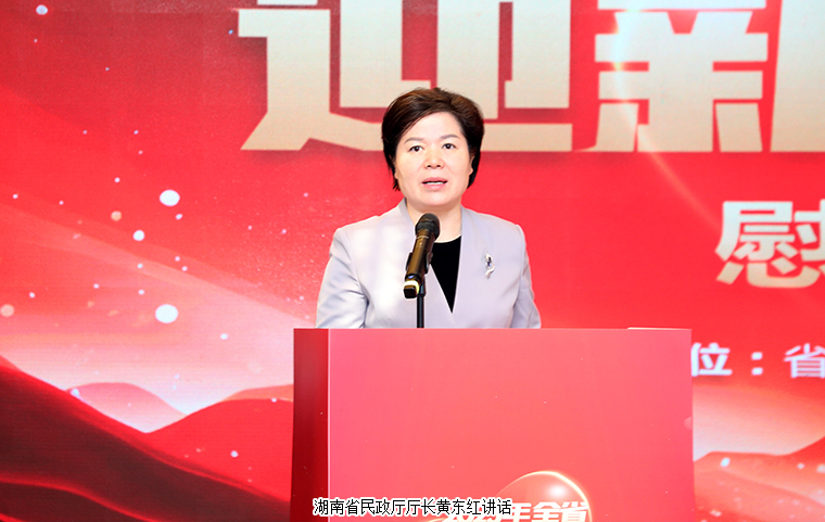 活動伊始,湖南省民政廳廳長黃東紅致辭。她表示,“中國式現(xiàn)代化,民生為大。”習(xí)近平總書記指出,要切實保障和改善民生,盡力而為,量力而行,多干順民意、惠民生、暖民心的實事,扎實解決人民群眾急難愁盼的問題。春節(jié)將至,幫助困難群眾溫暖過冬、祥和過年是各級黨委政府的最大牽掛。湖南省民政廳聯(lián)合省委宣傳部、省應(yīng)急管理廳、省糧食和物資儲備局等相關(guān)單位連續(xù)21年開展“迎新春 送溫暖”慰問活動,這是增進民生福祉、助力人民實現(xiàn)美好生活向往的具體實踐,也是愛心企業(yè)勇?lián)?zé)任、回報社會的生動體現(xiàn)。2025年,站在新起點上,希望全省民政部門要精準(zhǔn)對接困難群體的多元訴求,創(chuàng)新救助幫扶的模式,確保關(guān)懷不遺漏,讓愛的需要送到燈火闌珊處。希望全社會行動起來,共同奉獻愛心,共同關(guān)心困難群眾,共繪湖南溫暖民生新畫卷!