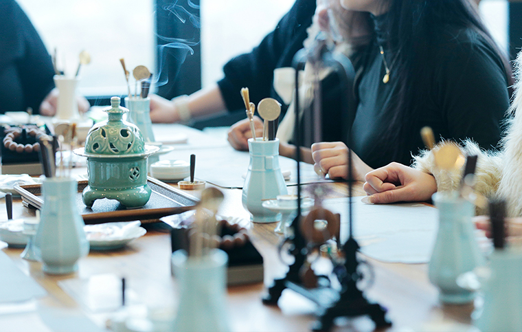 在五行珠串、宋代點茶、中式插花、古法篆香以及手工畫扇等環(huán)節(jié)中,綠之韻的女神們沉浸于傳統(tǒng)文化的博大精深之中,親手串起寓意深刻的五行珠串,感受每一顆珠子所承載的自然元素與文化奧義;學習宋代點茶的技藝,大家手持茶筅,輕輕攪動,感受宋代點茶的獨特魅力,在茶藝師的精心教授中,創(chuàng)作出精美的“茶百戲”;中式插花不僅是一種裝飾,更是一種文化的傳承和情感的表達。在花藝師的啟發(fā)下,女神們用心挑選花材,通過巧妙搭配,創(chuàng)作出簡約而富有意境的花束;在古法篆香區(qū),香道師引領大家親手制作篆香,品香冥想,感受香道的歷史底蘊;畫扇是宋代較為盛行的素色扇面繪畫,一面作畫,一面寫字,集自然雅趣于一圓方寸之中,畫扇師與綠之韻的女神們手持畫筆,恣意在扇面上勾勒,每一筆都傾注著她們的情感與才情。體驗傳統(tǒng)手工活動不僅讓綠之韻的女神們感受到了傳統(tǒng)文化的獨特魅力,更在動手創(chuàng)作的過程中,感受到了內心的寧靜與滿足,仿佛與古人進行了一場跨越時空的心靈對話,也讓大家更加深刻地理解了中華優(yōu)秀傳統(tǒng)文化的深厚底蘊和獨特價值。