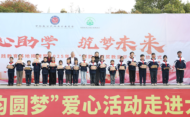 為營(yíng)造濃厚的關(guān)心人才、尊重人才、支持人才以及愛(ài)學(xué)、勤學(xué)、好學(xué)、比學(xué)的濃厚氛圍,2023年,致公黨湖南省委會(huì)、湖南省綠之韻公益基金會(huì)“綠韻圓夢(mèng)行動(dòng)”捐贈(zèng)50萬(wàn)元愛(ài)心資金用于在安化大橋?qū)W校設(shè)立“獎(jiǎng)教獎(jiǎng)學(xué)金”,支持鄉(xiāng)村振興文化建設(shè)和教育事業(yè)發(fā)展。4月2日,致公助學(xué)實(shí)踐教育基地揭牌暨2025年度“綠韻圓夢(mèng)獎(jiǎng)教獎(jiǎng)學(xué)金”發(fā)放儀式再次走進(jìn)安化縣冷市鎮(zhèn)大橋?qū)W校,為鄉(xiāng)村教育注入了新的活力。