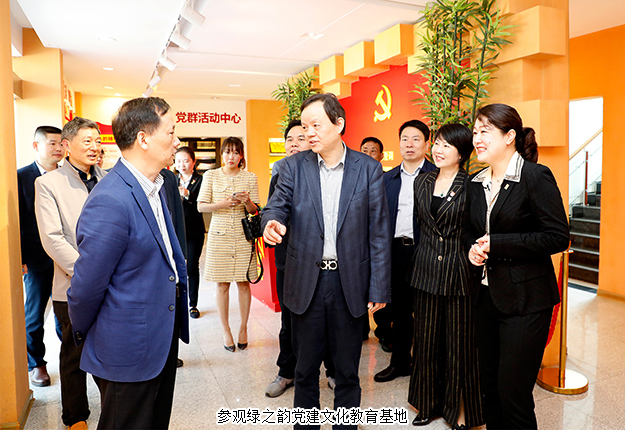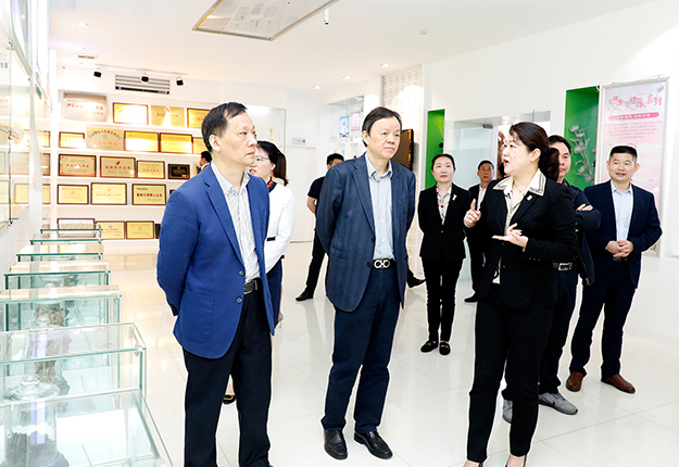 2019年5月10日,長沙市人大常委會副主任王國海、市人大財經(jīng)委主任委員丁志良、市人大財經(jīng)委副主任委員余勇等領導組成的調(diào)研組一行深入國家級瀏陽經(jīng)濟技術開發(fā)區(qū),先后走訪綠之韻集團、敬和堂制藥和加農(nóng)正和等園區(qū)代表企業(yè)。瀏陽市人大常委會副主任張友根、瀏陽市人民政府副市長屈湘水;瀏陽經(jīng)開區(qū)黨工委副書記、管委會主任談文昌,瀏陽經(jīng)開區(qū)管委會副主任陳志高等陪同調(diào)研。綠之韻集團董事、總裁勞嘉,黨委書記劉云,集團工會主席兼集團辦公室行政總監(jiān)馮紅,黨委副書記許達仲等全程陪同。