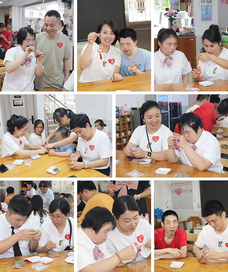 在晨光中心,有一支專門為殘障青年就業(yè)提供服務的團隊,老師們根據(jù)每個青年人的能力制定培養(yǎng)計劃,在輔助性就業(yè)、支持性就業(yè)和外出就業(yè)等方面提供專業(yè)幫助,目前團隊已為32名青年提供家庭評估,20余名青年在手工品制作、美食烹飪、音樂世界等方面不斷挖掘自己的潛力。捐贈儀式后,綠之韻幸福國際愛心志愿者們與孩子們一起動手制作艾草包,并現(xiàn)場購買殘障青年們手工制作品,讓他們的勞動成果實現(xiàn)了價值的轉(zhuǎn)變。在歡聲笑語中,艾草的清香與溫暖的情誼交織,讓這個午后格外溫馨。