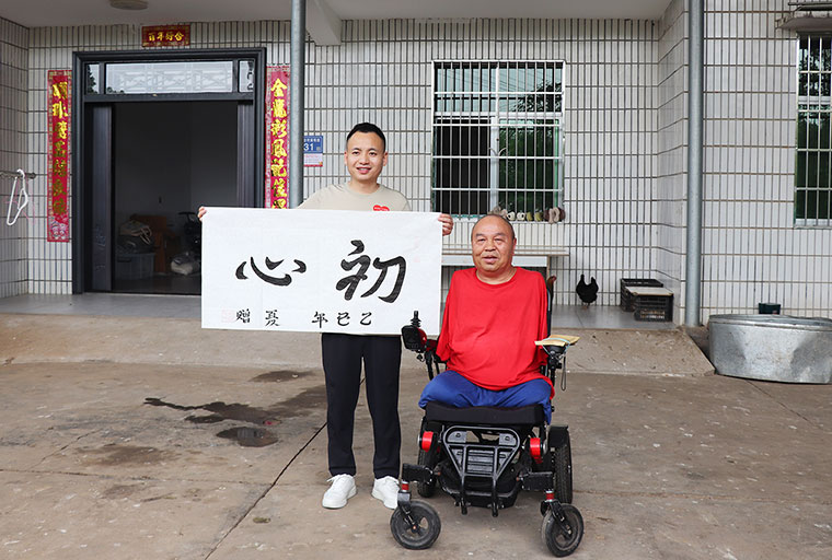 活動當天,綠之韻幸福國際愛心志愿者一行還前往四肢殘缺的畫家周國民及農(nóng)村殘疾青年家庭進行走訪慰問,送去暖心物資及愛心慰問金。四肢殘缺的畫家周國民在夏總及愛心志愿者的幫助下?lián)]毫潑墨,寫下了《初心》《綠之韻幸福國際》的書法作品。我們相信,命運奪走了他的部分軀體,愛讓他的人生不再殘缺。