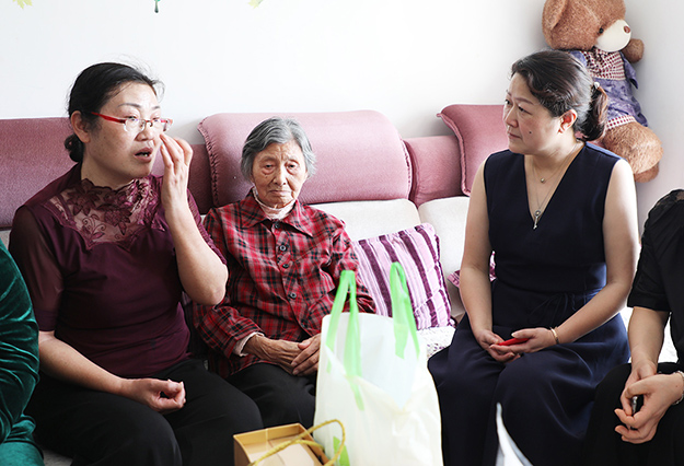 袁秀芝跟勞嘉理事長(zhǎng)聊起生活近況。她左邊坐著自己的老母親,右邊緊緊拽著她的大女兒。問(wèn)起因?yàn)橥话l(fā)血液疾病的小女兒的近況,她終于忍不住潸然淚下。一對(duì)可愛(ài)的雙胞胎女兒,當(dāng)時(shí)在肚子里就已經(jīng)進(jìn)行了醫(yī)治干預(yù),醫(yī)生預(yù)言活不過(guò)7歲,夫妻倆咬咬牙堅(jiān)持下來(lái),女兒到現(xiàn)在已經(jīng)30幾歲,其中各種艱辛難以言喻。女兒的殘缺沒(méi)有壓到她,公婆以及丈夫的相繼離世沒(méi)有壓倒她,但是小女兒突發(fā)莫名的血液疾病卻讓這個(gè)堅(jiān)強(qiáng)的母親差點(diǎn)垮了。