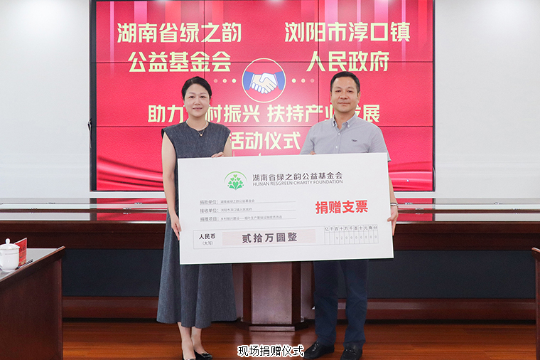 為深入貫徹落實(shí)鄉(xiāng)村振興戰(zhàn)略,助力鄉(xiāng)村產(chǎn)業(yè)高質(zhì)量發(fā)展,2025年6月27日,湖南省綠之韻公益基金會(huì)與淳口鎮(zhèn)人民政府聯(lián)合開(kāi)展的 “助力鄉(xiāng)村振興 扶持產(chǎn)業(yè)發(fā)展” 活動(dòng)在淳口鎮(zhèn)政府舉行。中共瀏陽(yáng)市淳口鎮(zhèn)黨委副書記、鎮(zhèn)長(zhǎng)高優(yōu),中共瀏陽(yáng)市淳口鎮(zhèn)黨委副書記羅信,瀏陽(yáng)市淳口鎮(zhèn)人大主席余舟,綠之韻集團(tuán)總裁、綠之韻公益基金會(huì)理事長(zhǎng)勞嘉,綠之韻集團(tuán)黨委書記劉云等領(lǐng)導(dǎo)參加活動(dòng)。綠之韻公益基金會(huì)向淳口鎮(zhèn)鎮(zhèn)政府捐贈(zèng)20萬(wàn)元用于鄉(xiāng)村振興產(chǎn)業(yè)建設(shè),為淳口鎮(zhèn)產(chǎn)業(yè)發(fā)展注入強(qiáng)勁動(dòng)力,推動(dòng)鄉(xiāng)村振興戰(zhàn)略落地生根。