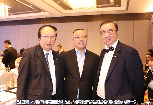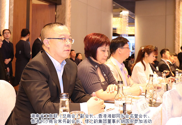 當天下午,胡國安董事長還受邀參加湖南(香港)現(xiàn)代服務業(yè)合作推介會。會上,湖南省人民政府副省長何報翔致辭并作湖南省情推介,香港特別行政區(qū)商務及經(jīng)濟發(fā)展局局長邱騰華致辭,湖南省文旅廳廳長陳獻春作湖南省文化旅游產(chǎn)業(yè)推介。湖南省商務廳黨組書記、廳長徐湘平出席會議。會議由湖南省人民政府辦公廳巡視員羅建軍主持。出席本次活動的工商界企業(yè)代表共121家,其中500強企業(yè)32家,包括世界500強15家,中國500強8家、民營500強9家。香港貿(mào)發(fā)局、港交所、普華永道會計師事務所、安永會計師事務所、戴德梁行、香港九龍倉集團、德國費森尤斯、美國AECOM公司、法國巴黎銀行、日本瑞穗銀行、和記地產(chǎn)集團、中國長城、越秀交通、香港中華總商會、香港中華廠商聯(lián)合會、香港中國企業(yè)協(xié)會、香港工業(yè)總會、第一太平戴維斯物業(yè)顧問、仲量聯(lián)行等高層均應邀到會。