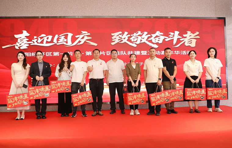 紅旗漫卷山河壯,七十六載譜華章。為慶賀中華人民共和國成立76周年,近日,由瀏陽經(jīng)開區(qū)第一片區(qū)、第三片區(qū)聯(lián)合主辦,綠之韻集團(tuán)第二黨支部與鹽津鋪?zhàn)拥谝稽h支部共同承辦的“喜迎國慶·致敬奮斗者”結(jié)對共建暨互動嘉年活動舉行。瀏陽經(jīng)開區(qū)企業(yè)黨委專職副書記陳飛雪,企業(yè)黨委委員、黨管科科長胡佳樂;綠之韻集團(tuán)黨委書記劉云,黨委副書記許達(dá)仲,業(yè)務(wù)服務(wù)中心業(yè)務(wù)總經(jīng)理、第二黨支部書記陳建新;鹽津鋪?zhàn)狱h委副書記湯云峰等領(lǐng)導(dǎo)出席,片區(qū)百余名企業(yè)黨員職工代表齊聚一堂,以奮斗者之名共賀華誕。