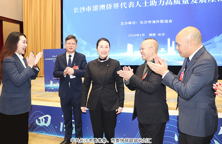 2026年1月6日,“我的中國心”長沙市港澳僑界代表人士助力高質(zhì)量發(fā)展座談會召開。中共長沙市委常委、市委統(tǒng)戰(zhàn)部部長劉匯出席。中共長沙市委統(tǒng)戰(zhàn)部分管日常工作的副部長黃陽參加并主持座談會。長沙市人大代表、香港長沙聯(lián)誼會會長、綠之韻集團董事長胡國安受邀參加會議。