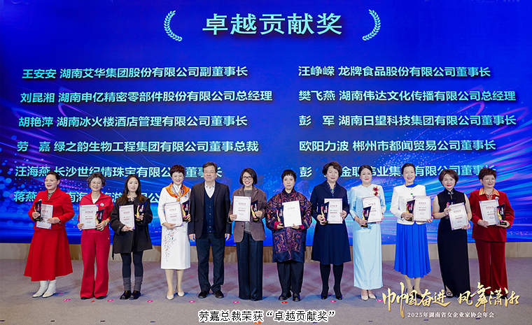 在熱烈的氛圍中,湖南省婦聯(lián)副主席楊成英登臺(tái)宣布《關(guān)于2025年度湖南省女企業(yè)家協(xié)會(huì)優(yōu)秀典型的通報(bào)》。過(guò)去一年,在協(xié)會(huì)組織開(kāi)展的各項(xiàng)活動(dòng)里,一大批女企業(yè)家勇立潮頭、實(shí)干擔(dān)當(dāng),以履職盡責(zé)的堅(jiān)守、無(wú)私奉獻(xiàn)的情懷,書(shū)寫(xiě)了巾幗建功的動(dòng)人篇章。綠之韻集團(tuán)總裁勞嘉憑借突出貢獻(xiàn)與榜樣力量,榮獲“卓越貢獻(xiàn)獎(jiǎng)”,熱烈持久的掌聲,是對(duì)她深耕實(shí)業(yè)、勇?lián)?zé)任的最好褒獎(jiǎng)。